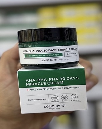 کرم میراکل سام بای می یک محصول فوقالعاده برای پوستهای مختلط تا چرب است که حاوی اسیدهای لایه بردار BHA، AHA و PHA بوده و با لایه برداری ملایم سبب از بین رفتن سلولهای مرده شده و از بروز آکنه جلوگیری میکند .